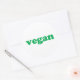 Pegatina cuadrada de letras verdes "vegano", fondo blanco, hoja de pegatinas