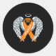 Pegatina Redonda Leukemia Awareness Warrior Naranja Ribbon y Angel