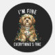 Pegatina Redonda Lhasa Apso Christmas I'm Fine Everything Is Fine
