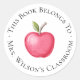 Etiqueta personalizada de la placa maestra con diseño de manzana. El texto dice "Este libro pertenece a" personalizado con el nombre del profesor para etiquetar fácilmente los libros de clase u otros suministros. Utilice las herramientas de diseño para personalizar adicional de su propio diseño único.