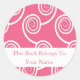 Pegatina Redonda Librería Personalizada -Swirl Blanco En Rosa
