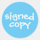 Un simple pero sorprendente pegatina de autor. Declarando 'copia firmada' en tipografía en negrita sobre fondo azul. Una buena manera de hacer destacarse las copias autografiadas de tu libro.
