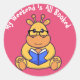 Pegatina Redonda Libro de lectura de jirafas graciosas personalizad