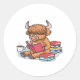 Pegatina Redonda Libros de lectura de vacas en el bosque de Highlan