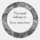 Pegatina Redonda Libros de personalizados de Black Retro Swirls