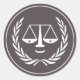 Pegatinas de regalos de graduación de facultades de Derecho, etiquetas de partidos creativos o sellos para sobres con escalas de justicia en un fondo gris para graduados de facultades de Derecho, abogados, abogados, abogados, jueces o parajurídicos. Añadir texto a personalizar.