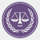 Pegatinas de regalos de graduación de facultades de Derecho, etiquetas partidarias o sellos para sobres con escalas de justicia en color morado para graduados de facultades de Derecho, abogados, abogados, jueces o parajurídicos. Añadir texto a personalizar.