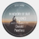 Al final del trabajo de su vida, un hombre sentado solo en la montaña, como los motivos de una tarjeta de luto y condolencia y accesorios en un diseño de color moderno con fuente blanca. Los textos, la fecha y el nombre se pueden personalizar.