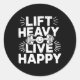 Pegatina Redonda Lift Heavy Live Happy Barbell Bodybuilding