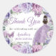 Pegatina Redonda Lila Lavanda Floral Quinceañera Princesa