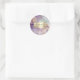 Lilac Glitter Watercolor Faux Gold Foil Gracias Sticker Redondo Clásico. Este diseño presenta una fuente de estilo de firma clásica contra un hermoso fondo moderno de brillo lila. Perfecto para un salón de belleza, estilista de cabello, artista de maquillaje o cosmetólogo.