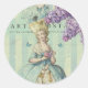 Lilas au printemps, traducido simplemente significa Lilacs en primavera. Este romántico y chic hotel de aspecto muy francés, pone en peligro el collage de un vintage plato del siglo XVIII, una encantadora imagen vintage de un perro en un cojín, mariposas y lilatas. Todo sobre un fondo de rayas azules y crema. ©Wickedly Lovely, todos los derechos reservados.