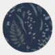 Pegatina Redonda Lily of Valley con Ferns || Azul oscuro profundo