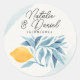 Pegatina Redonda Limón con hojas azules ilustracion botánico