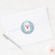 Pegatina redonda de regalo o sobre de temporada moderna y elegante en azul polvoriento y blanco con nieve que cae y un adorable oso polar blanco con una bufanda de lana roja.++++++++++ ¡Personalízalo con tu texto!