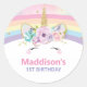 Coordina tu fiesta con estas divertidas etiquetas adhesivas de Unicornio Arcoíris. Con un lindo unicornio y un hermoso arcoíris adornado con estrellas brillantes. ¡Perfecto para el primer cumpleaños o CUALQUIER EDAD! Personalízalo con tus datos de manera fácil y rápida, simplemente presiona el botón personalizar para reorganizar y dar formato al estilo y ubicación del texto. Úsalas como sellos de sobre, decoraciones para cupcakes o etiquetas de favor. ¡Consulta los artículos coincidentes de esta colección disponibles en la tienda! (c) The Happy Cat Studio