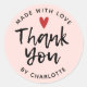 Pegatina Redonda Lindo Rubor Pink Gracias Hecho A Mano Con Amor