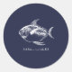 Pegatina Redonda Line Art Fish Dark Blue Beach Wedding