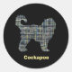 Pegatina Redonda Línea Cuadrícula Amarilla y Negra de perro Cockapo