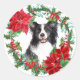 Pegatina Redonda Línea de borde Collie Poinsettia Holly Holiday Wre
