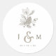 Pegatina Redonda Línea Dibujada Pinecone & Acorns Monograma Boda Ca