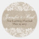 Pegatina Redonda Linen Beige Burlap & White Floral Lace 2 Invitació
