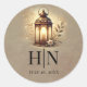 Pegatina Redonda Linterna de bronce brillante boda rústica romántic