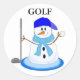 Un lindo muñeco de nieve listo para jugar al golf, le dieron sus bolas de nieve y su club.