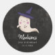 La fiesta de cumpleaños temática de Halloween favorece a un pegatina que presenta un ilustracion de un fantasma con un gorra de brujas sobre un fondo negro de pizarra. Perfecto para el fiesta de un niño en otoño.
