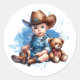 Pegatina Redonda Little Cowboy y Teddy Bear Baby Shower