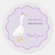 Añade un toque de dulzura a tus simpatías gracias a este pegatina de agradecimiento con una ganso pintada a mano, un marco ondulado y un fondo de gingham de color lila pastel. Diseñado para coordinar con nuestra colección de cumpleaños Little Goose, es perfecto para fiestas de primer cumpleaños para niñas y niños. ¡Personaliza con tu propio mensaje!