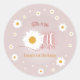 Add a charming touch to your Little Miss Onederful celebration with this daisy-themed sticker featuring sweet pink tones and retro-inspired floral artwork. Ideal for party favors, envelope seals, treat bags, and décor. Fully customizable to match your boho girly birthday theme.