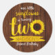 Pegatina Redonda Little Sunflower Rustic Wood 2º cumpleaños