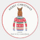 Pegatina Redonda Llama con graciosos Navidades suéter nórdico