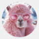 Pegatina Redonda Llama rosa glamorosa - Icono de la moda del invier