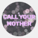 Los Pegatinas de la ronda de Personalizados de su madre son pegatinas de estilo contemporáneo impresos por el diseñador que se pueden personalizar. Este diseño presenta "Llama a tu madre" en un fondo moderno de diseño de puntos que se puede editar y cambiar a tu gusto.