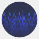 Pegatina Redonda Llamas azules de las Carreras en la impresión de