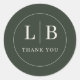 This elegant wedding sticker design features a minimalist and sophisticated style, perfect for expressing gratitude on special occasions. The circular motif with clean lines and classic typography creates an understated yet refined look, while the muted green color palette adds a touch of timeless charm. Ideal for adding a personal thank-you note to your wedding favors or stationery, this design exudes warmth and appreciation in its simple yet meaningful presentation.