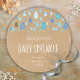 Gotitas de lluvia azules chic caen hacia tus detalles personalizados sobre un fondo kraft rústico, en esta pegatina de baby sprinkle. Ideal para sellar sobres de invitaciones o detalles de la fiesta. Diseñado por Thisisnotme