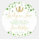 Celebra con estilo con estas dulces, modernas y muy trendy pegatinas de "Lucky in Love" para despedida de soltera. El diseño presenta tréboles de hoja de trébol de acuarela verde con un conjunto entrelazado de herraduras de la suerte y texto personalizable que es perfecto para una boda con tema de Día de San Patricio o irlandés.