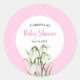 Pegatina Redonda Lluvia De Bebé Flores Blancas De Nieve Lunares Ros
