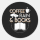 Pegatina Redonda Lluvia De Café Y Libros Divertidos Camisas