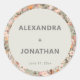 Esta pegatina personalizada para ducha de pareja presenta un borde botánico de flores silvestres exuberantes en tonos suaves de salvia, taupe, rubor y rosa polvoriento que rodea un círculo de crema limpia con los nombres de la pareja y la fecha en tipografía en negrita. Un toque final versátil para bolsas de favores, sobres, botellas de agua o decoración de mesa en una celebración al aire libre, en un invernadero o en un lugar rústico. Personalice con cualquier nombre y fecha para unir todo su conjunto. Perfecto para una estética de ducha coed cottagecore, boho chic o vintage.