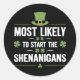 Pegatina Redonda Lo más probable es que empiecen los Shenanigans St