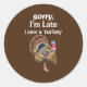 Pegatina Redonda lo siento, llegué tarde a ver un pavo gracioso