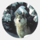 Pegatina Redonda Lobo de madera norteamericano en la nieve