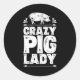 Pegatina Redonda Loco Cerdo Lady Graciosa Granja Granjera Lover Ani