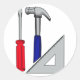 Este destornillador, martillo y cuadrado son las herramientas más usadas para cualquier constructor o reparador. Gran arte impreso para tarjetas de visita o publicidad.