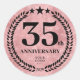 Pegatinas redondos de 35 años al estilo purpurina rosa con un logo comercial. Diseño conmemorativo con una rama de laurel y estrellas. El logotipo se puede cambiar a texto haciendo clic en el botón para editar el diseño.