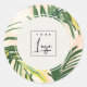 Pegatina Redonda Logo del Boho Rubor Green Tropical Palm Leaves Bea